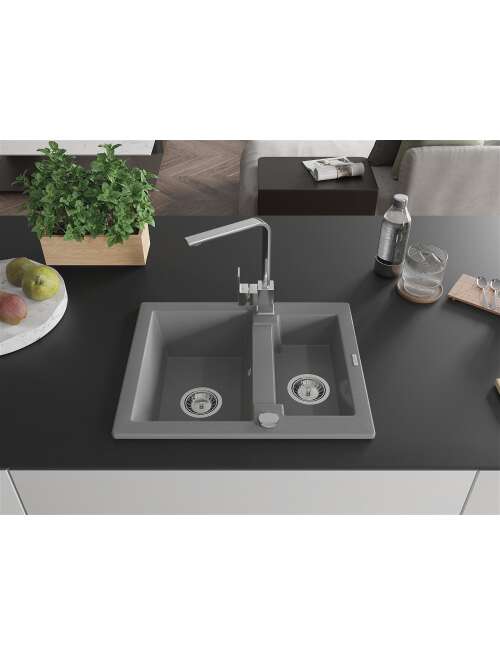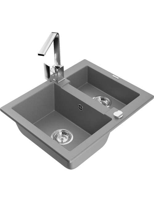 Mexen Carlos zlewozmywak granitowy 1,5-komorowy z baterią kuchenną Rita, szary - 6518-71-670300-00