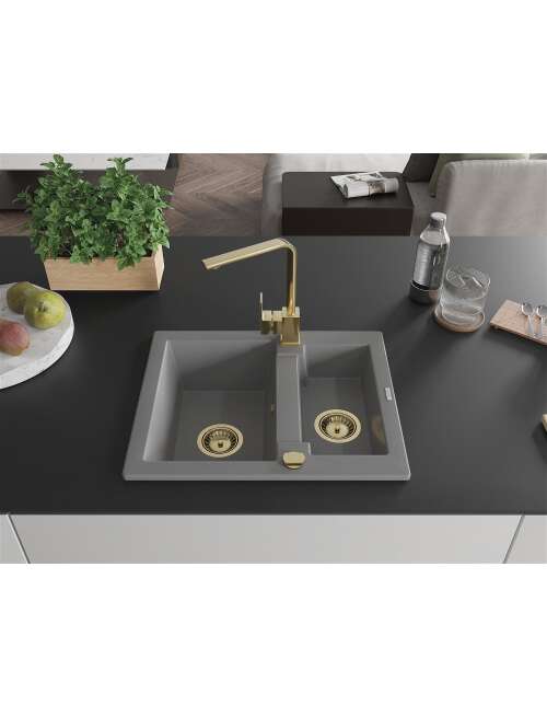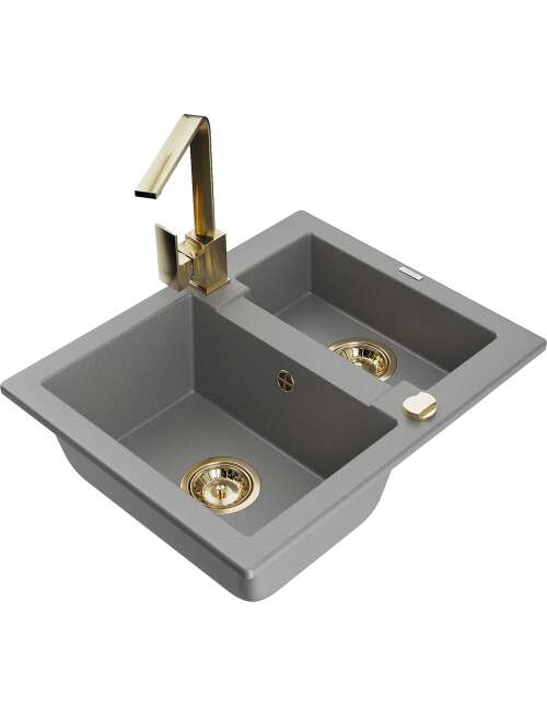 Mexen Carlos zlewozmywak granitowy 1,5-komorowy z baterią kuchenną Rita, szary - 6518-71-670300-50