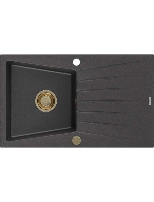 Mexen Cesar zlewozmywak granitowy 1-komorowy z ociekaczem 775 x 470 mm, czarny nakrapiany, syfon złoty - 6514771010-76-G