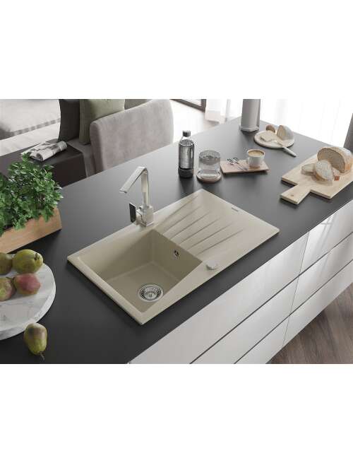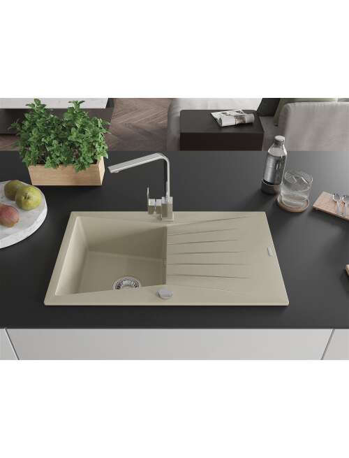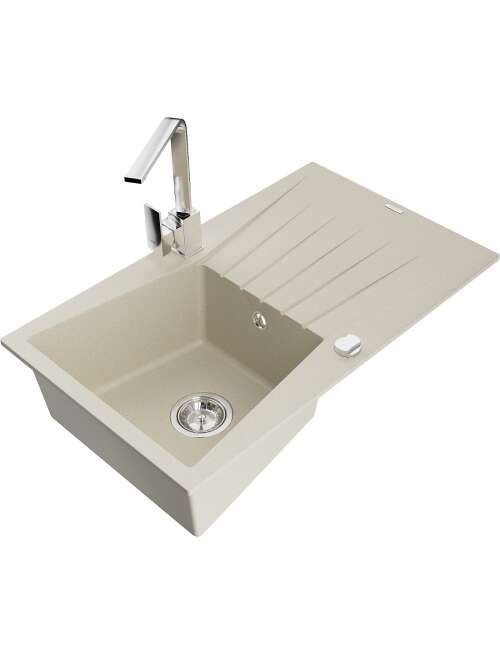 Mexen Cesar zlewozmywak granitowy 1-komorowy z ociekaczem i baterią kuchenną Rita, beżowy - 6514-69-670300-00