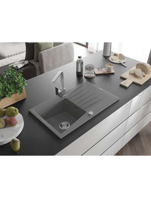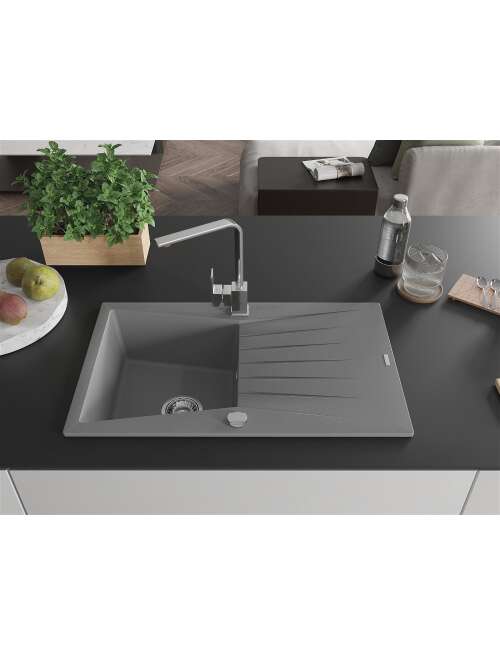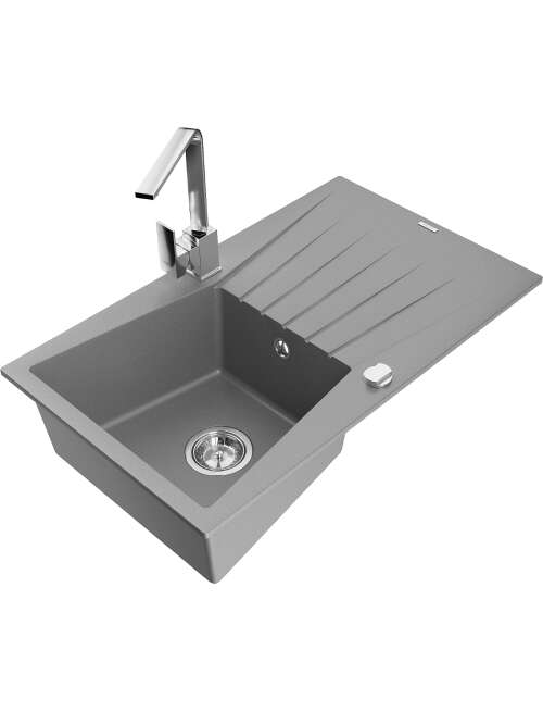 Mexen Cesar zlewozmywak granitowy 1-komorowy z ociekaczem i baterią kuchenną Rita, szary - 6514-71-670300-00