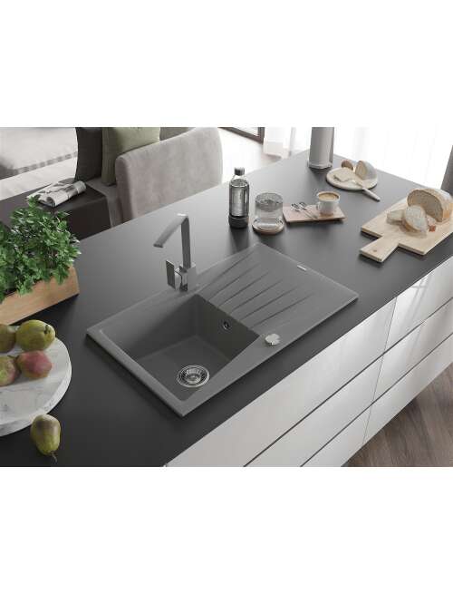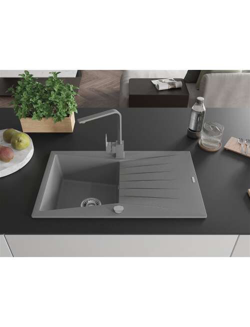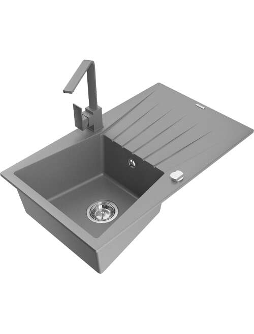 Dane techniczne: Zlewozmywak: Rozmiar: 775x470x200 mm Głębokość komory: 180 mm Wymiary komory: 410x355 mm Średnica odpływu: ø90 mm Typ: 1-komorowy z ociekaczem Rodzaj: Wpuszczany w blat Kolor: Szary Wykończenie syfonu: Chrom Materiał: Granit (80% kruszywo granitowe 20% żywice) Otwór przelewowy: Tak Otwory: ( bateria, automat ) 2 Montaż: Uniwersalny, możliwość montażu z ociekaczem po lewej lub prawej stronie Wysoka odporność na zarysowania i przebarwienia Odporność na szok termiczny Powierzchnia ułatwiająca czyszczenie Bateria kuchenna: Materiał: Mosiądz Kolor: Szary Głowica: Ceramiczna Perlator: Tak Typ: Jednouchwytowa Wysokość baterii: 290 mm Zasięg wylewki: 220 mm |