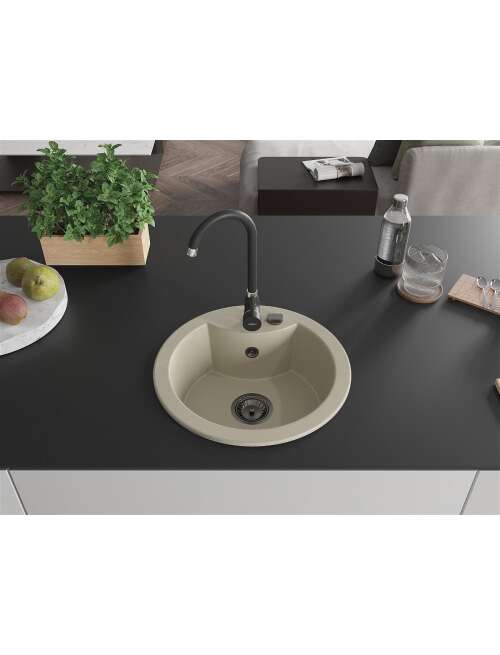 Mexen Diego zlewozmywak granitowy 1-komorowy 488 x 480 mm, beżowy, syfon czarny - 6512481000-69-B