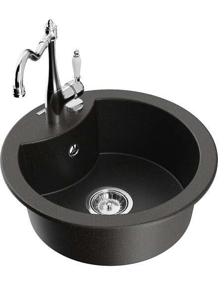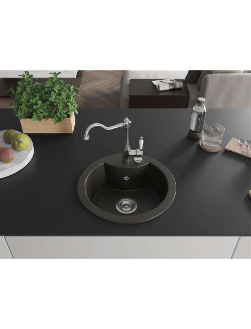 Mexen Diego zlewozmywak granitowy 1-komorowy z baterią kuchenną Carla, czarny/złoty metalik - 6512-75-670700-00