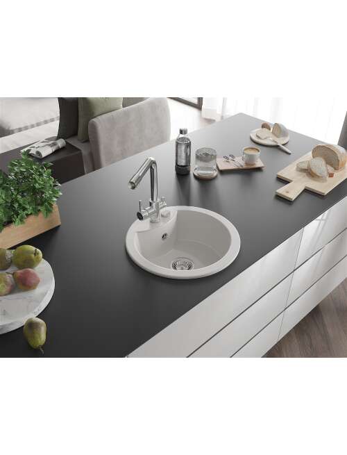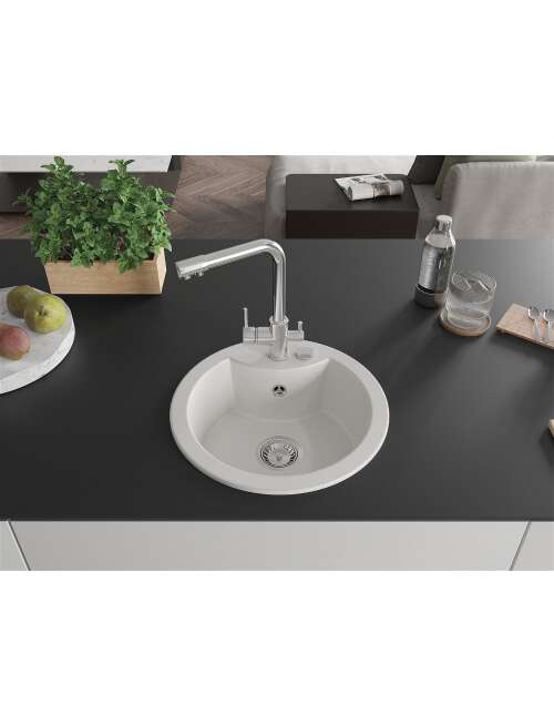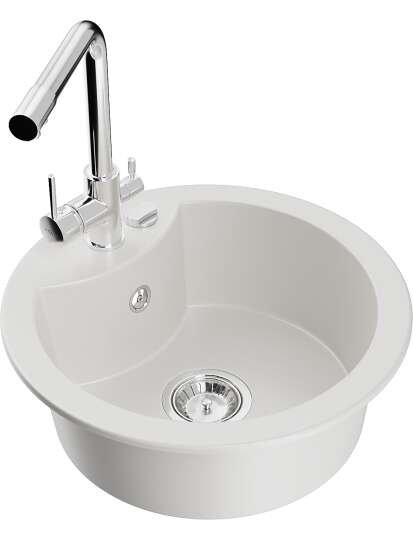 Mexen Diego zlewozmywak granitowy 1-komorowy z baterią kuchenną Duero, biały - 6512-20-671600-00