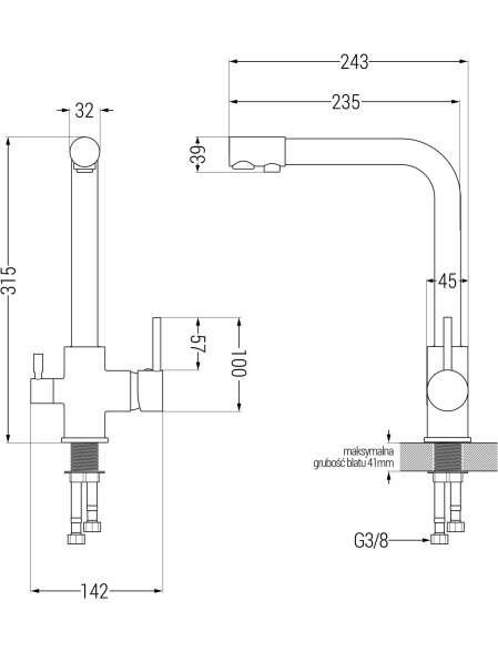 Zasięg wylewki: 235 mm