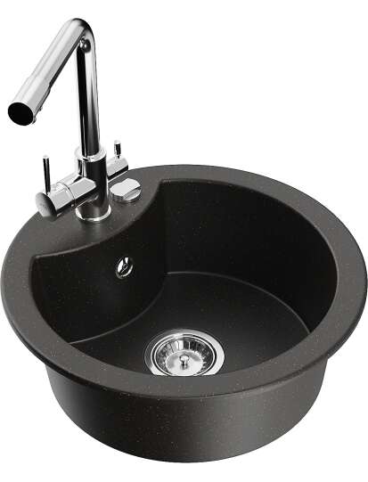 Mexen Diego zlewozmywak granitowy 1-komorowy z baterią kuchenną Duero, czarny/złoty metalik - 6512-75-671600-00