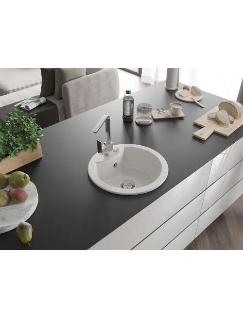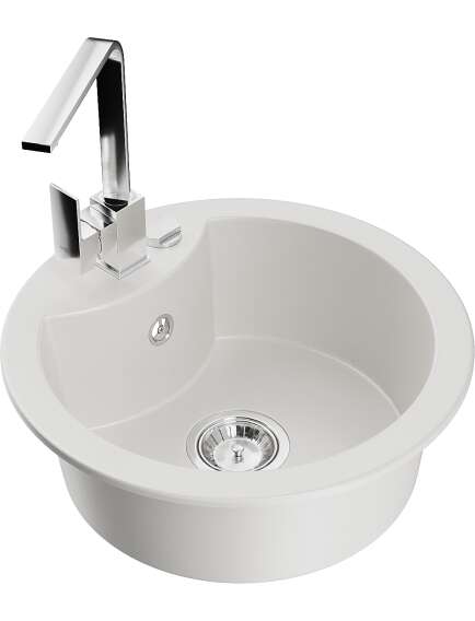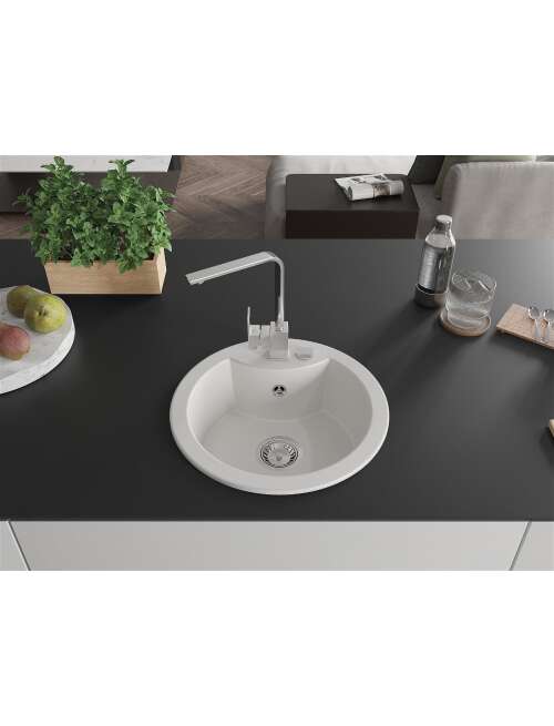 Mexen Diego zlewozmywak granitowy 1-komorowy z baterią kuchenną Rita, biały - 6512-20-670300-00