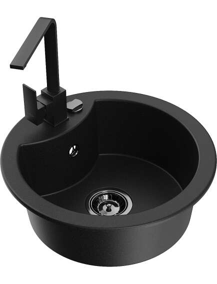 Mexen Diego zlewozmywak granitowy 1-komorowy z baterią kuchenną Rita, czarny - 6512-77-670300-70-B