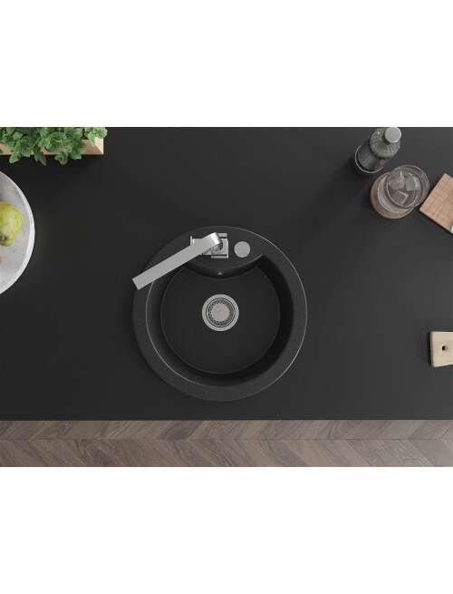 Dane techniczne: Zlewozmywak: Rozmiar: 488x488x167 mm Głębokość komory: 157 mm Szerokość komory: 406 mm Średnica odpływu: ø90 mm Typ: 1-komorowy Rodzaj: Wpuszczany w blat Kolor: Czarny/Srebrny metalik Wykończenie syfonu: Chrom Materiał: Granit (80% kruszywo granitowe 20% żywice) Otwór przelewowy: Tak Otwory: ( bateria, automat ) 2 Wysoka odporność na zarysowania i przebarwienia Odporność na szok termiczny Powierzchnia ułatwiająca czyszczenie Jeden dodatkowy podfrezowany otwór do samodzielnego wybicia ø35 Bateria kuchenna: Materiał: Mosiądz Kolor: Chrom Głowica: Ceramiczna Perlator: Tak Typ: Jednouchwytowa Wysokość baterii: 290 mm Zasięg wylewki: 220 mm |