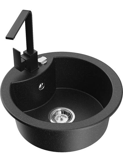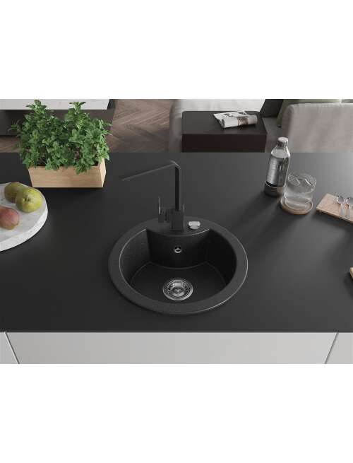Mexen Diego zlewozmywak granitowy 1-komorowy z baterią kuchenną Rita, czarny/srebrny metalik - 6512-73-670300-70