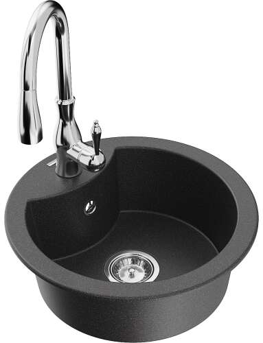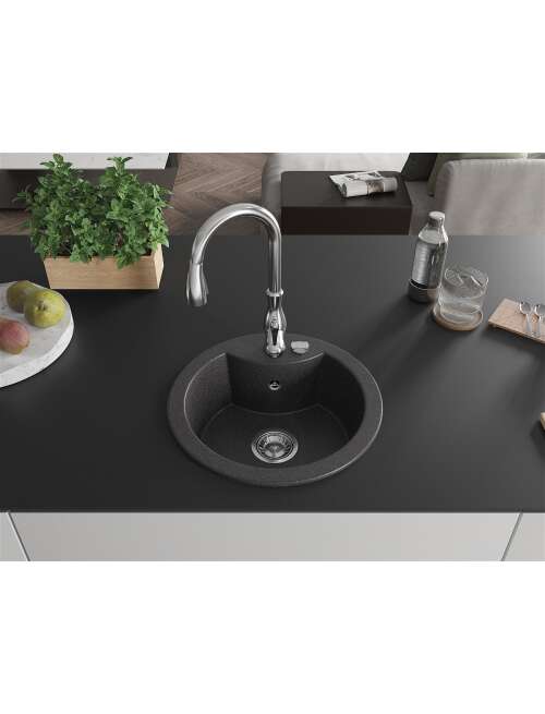 Mexen Diego zlewozmywak granitowy 1-komorowy z baterią kuchenną Savita, czarny nakrapiany - 6512-76-672601-00