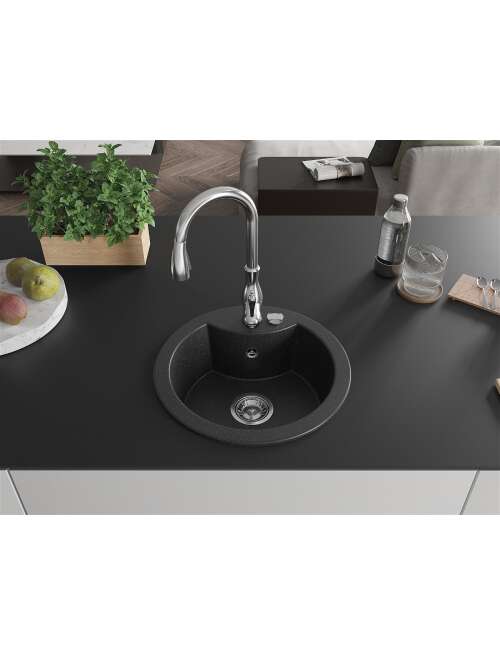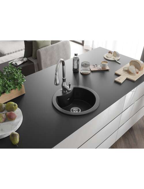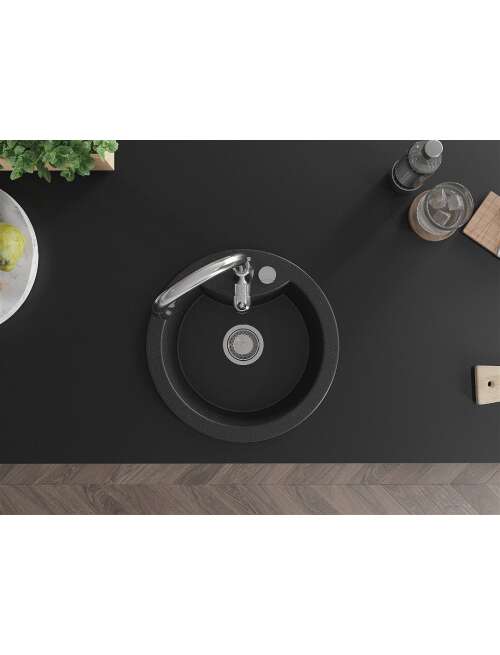 Dane techniczne: Zlewozmywak: Rozmiar: 488x488x167 mm Głębokość komory: 157 mm Szerokość komory: 406 mm Średnica odpływu: ø90 mm Typ: 1-komorowy Rodzaj: Wpuszczany w blat Kolor: Czarny/Srebrny metalik Wykończenie syfonu: Chrom Materiał: Granit (80% kruszywo granitowe 20% żywice) Otwór przelewowy: Tak Otwory: ( bateria, automat ) 2 Wysoka odporność na zarysowania i przebarwienia Odporność na szok termiczny Powierzchnia ułatwiająca czyszczenie Jeden dodatkowy podfrezowany otwór do samodzielnego wybicia ø35 Bateria kuchenna: Materiał: Mosiądz Kolor: Chrom Głowica: Ceramiczna Perlator: Tak Typ: Jednouchwytowa Wysokość baterii: 410 mm Zasięg wylewki: 231 mm |