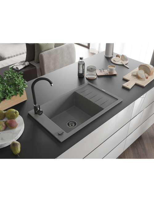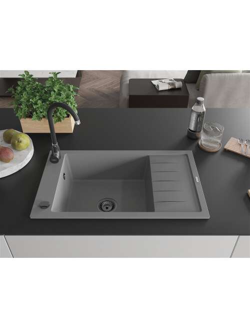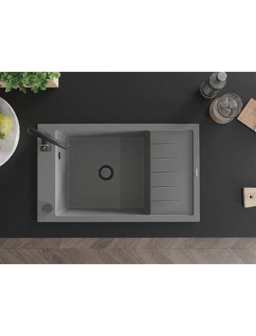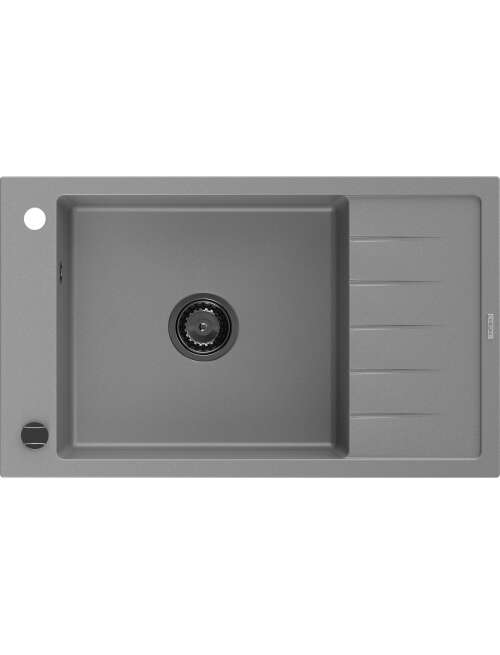 Mexen Elias zlewozmywak granitowy 1-komorowy z ociekaczem 795 x 480 mm, szary, syfon czarny - 6511791005-71-B