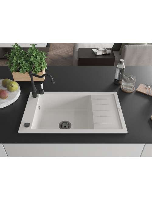 Dane techniczne: Zlewozmywak: Rozmiar: 795x480x200 mm Głębokość komory: 190 mm Wymiary komory: 465x420 mm Średnica odpływu: ø90 mm Typ: 1-komorowy z krótkim ociekaczem Rodzaj: Wpuszczany w blat Kolor: Biały Wykończenie syfonu: Czarny Materiał: Granit (80% kruszywo granitowe 20% żywice) Otwór przelewowy: Tak Otwory: ( bateria, automat ) 2 Montaż: Uniwersalny, możliwość montażu z ociekaczem po lewej lub prawej stronie Wysoka odporność na zarysowania i przebarwienia Odporność na szok termiczny Powierzchnia ułatwiająca czyszczenie Jeden dodatkowy podfrezowany otwór do samodzielnego wybicia ø35 Bateria kuchenna: Materiał: Mosiądz Kolor: Czarny Głowica: Ceramiczna Perlator: Tak Typ: Jednouchwytowa Wysokość baterii: 290 mm Zasięg wylewki: 260 mm |