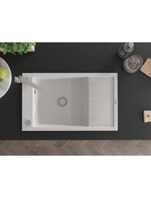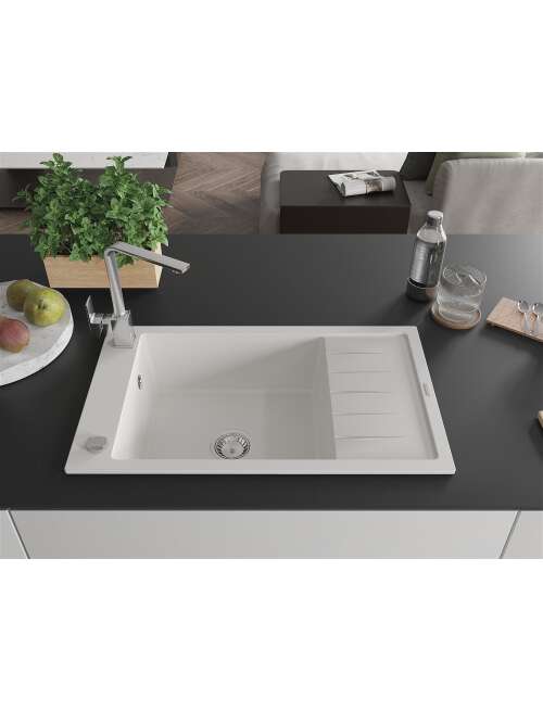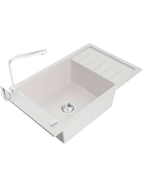 Mexen Elias zlewozmywak granitowy 1-komorowy z ociekaczem i baterią kuchenną Rita, biały - 6511-20-670300-00