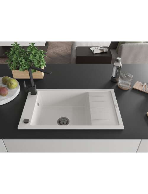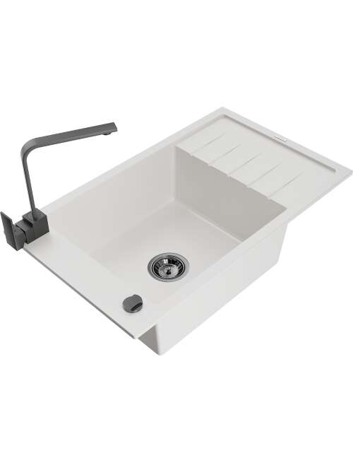 Dane techniczne: Zlewozmywak: Rozmiar: 795x480x200 mm Głębokość komory: 190 mm Wymiary komory: 465x420 mm Średnica odpływu: ø90 mm Typ: 1-komorowy z krótkim ociekaczem Rodzaj: Wpuszczany w blat Kolor: Biały Wykończenie syfonu: Czarny Materiał: Granit (80% kruszywo granitowe 20% żywice) Otwór przelewowy: Tak Otwory: ( bateria, automat ) 2 Montaż: Uniwersalny, możliwość montażu z ociekaczem po lewej lub prawej stronie Wysoka odporność na zarysowania i przebarwienia Odporność na szok termiczny Powierzchnia ułatwiająca czyszczenie Jeden dodatkowy podfrezowany otwór do samodzielnego wybicia ø35 Bateria kuchenna: Materiał: Mosiądz Kolor: Czarny Głowica: Ceramiczna Perlator: Tak Typ: Jednouchwytowa Wysokość baterii: 290 mm Zasięg wylewki: 220 mm |