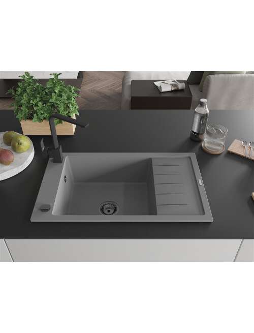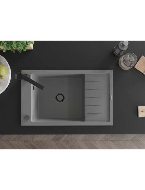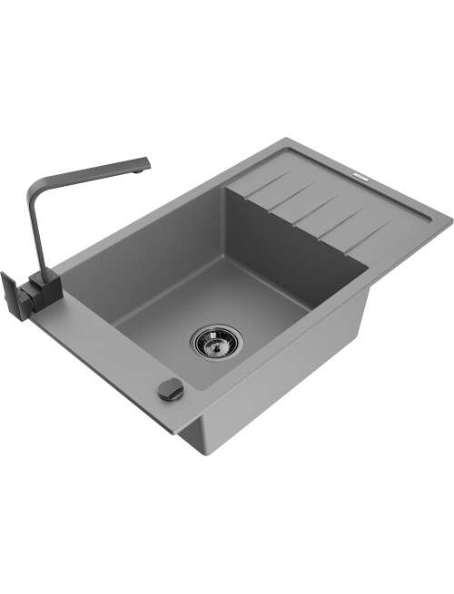 Mexen Elias zlewozmywak granitowy 1-komorowy z ociekaczem i baterią kuchenną Rita, szary - 6511-71-670300-70-B