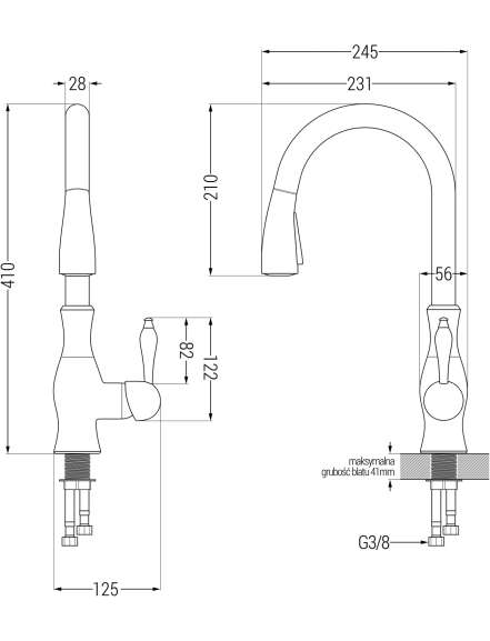Montaż: Uniwersalny, możliwość montażu z ociekaczem po lewej lub prawej stronie