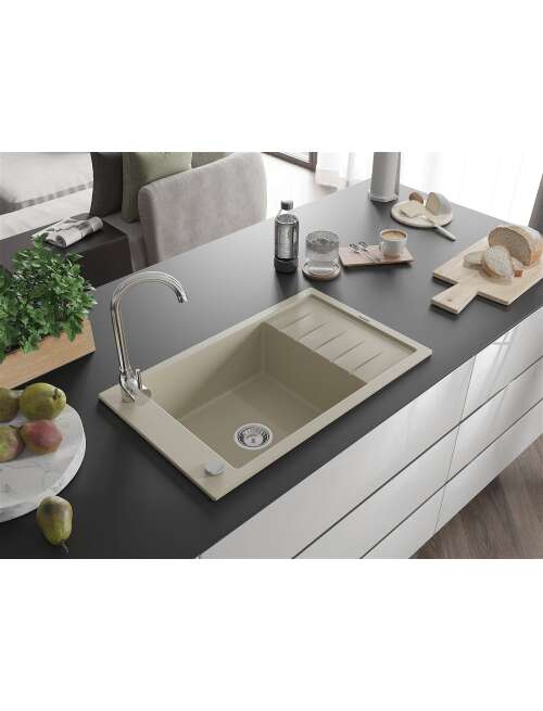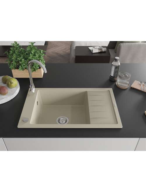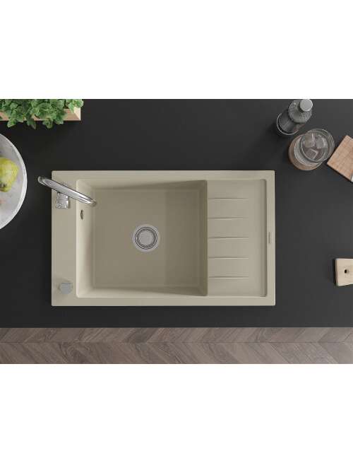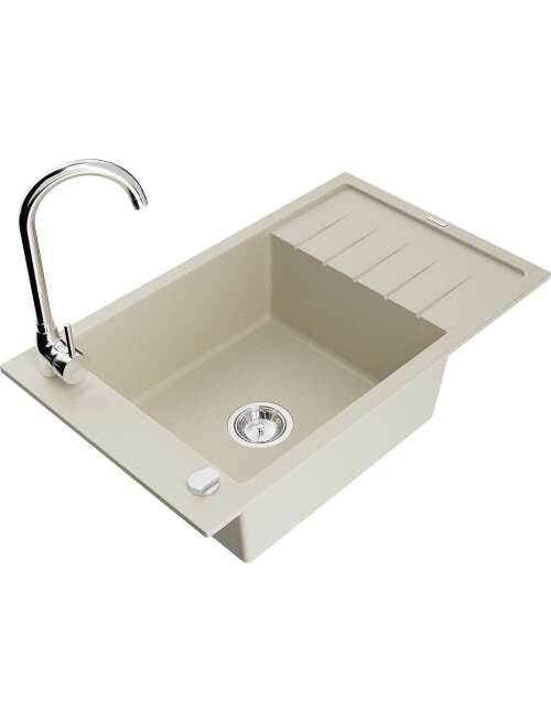Mexen Elias zlewozmywak granitowy 1-komorowy z ociekaczem i baterią kuchenną Telma, beżowy - 6511-69-670200-00