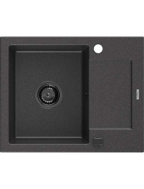 Dane techniczne: Rozmiar: 576x465x174 mm Głębokość komory: 164 mm Wymiary komory: 395x320 mm Średnica odpływu: ø90 mm Rodzaj: 1-komorowy z krótkim ociekaczem Typ: Wpuszczany w blat Materiał: Granit Kolor: Czarny nakrapiany Wykończenie syfonu: Czarny Otwór przelewowy: Tak Otwór na baterie: Tak Syfon automatyczny w komplecie Wysoka odporność na zarysowania i przebarwienia Odporność na szok termiczny Powierzchnia ułatwiająca czyszczenie Dwa dodatkowe podfrezowane otwory do samodzielnego wybicia ø35 |