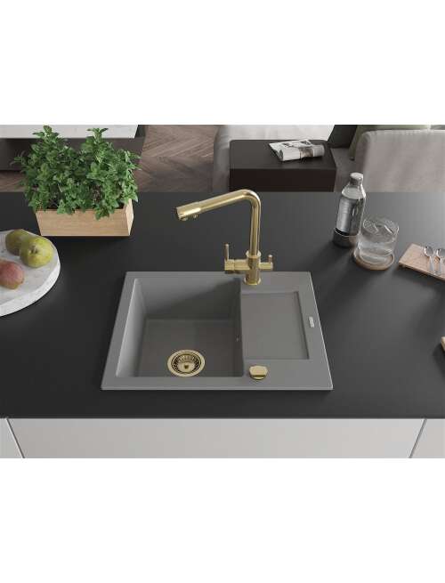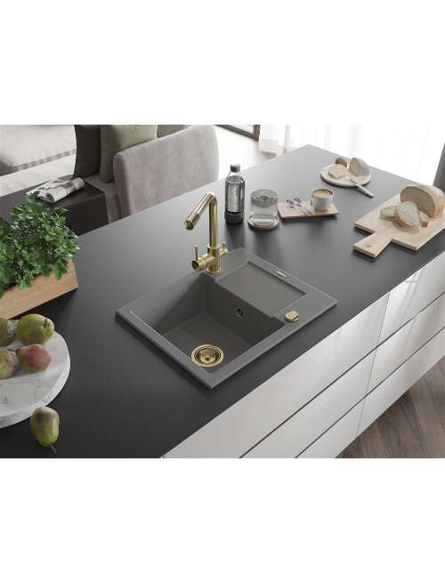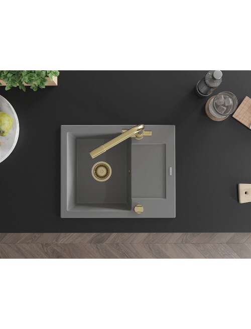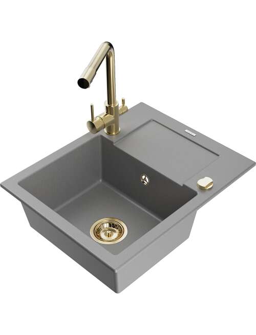 Mexen Enzo zlewozmywak granitowy 1-komorowy z ociekaczem i baterią kuchenną Duero, szary - 6506-71-671600-50