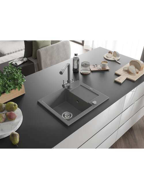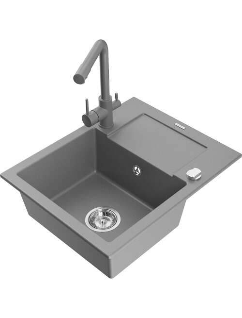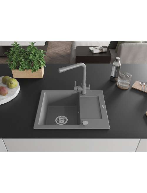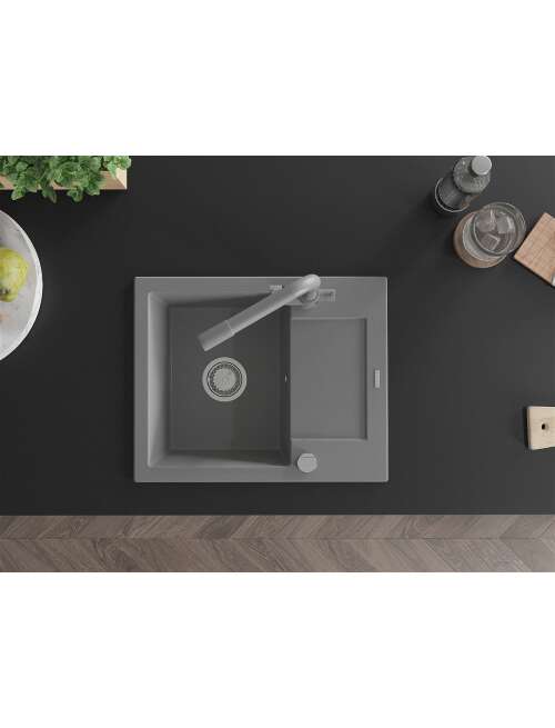 Mexen Enzo zlewozmywak granitowy 1-komorowy z ociekaczem i baterią kuchenną Duero, szary - 6506-71-671600-71
