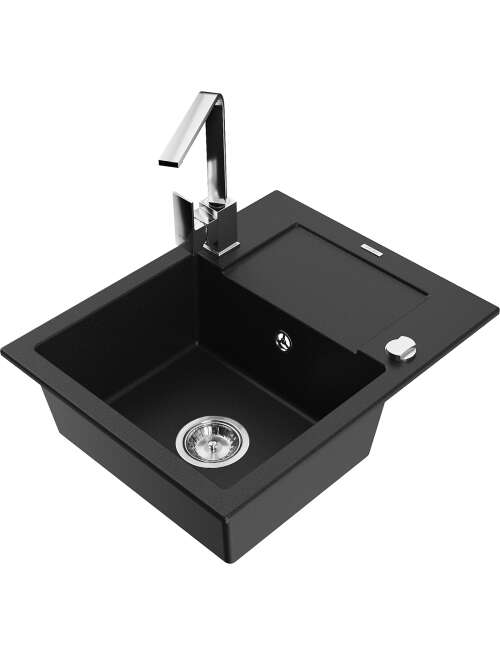 Dane techniczne: Zlewozmywak: Rozmiar: 576x465x174 mm Głębokość komory: 164 mm Wymiary komory: 395x320 mm Średnica odpływu: ø90 mm Typ: 1-komorowy z krótkim ociekaczem Rodzaj: Wpuszczany w blat Kolor: Czarny Wykończenie syfonu: Chrom Materiał: Granit (80% kruszywo granitowe 20% żywice) Otwór przelewowy: Tak Otwory: ( bateria, automat ) 2 Montaż: Uniwersalny, możliwość montażu z ociekaczem po lewej lub prawej stronie Wysoka odporność na zarysowania i przebarwienia Odporność na szok termiczny Powierzchnia ułatwiająca czyszczenie Dwa dodatkowe podfrezowane otwory do samodzielnego wybicia ø35 Bateria kuchenna: Materiał: Mosiądz Kolor: Chrom Głowica: Ceramiczna Perlator: Tak Typ: Jednouchwytowa Wysokość baterii: 290 mm Zasięg wylewki: 220 mm |