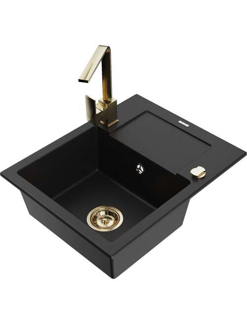 Mexen Enzo zlewozmywak granitowy 1-komorowy z ociekaczem i baterią kuchenną Rita, czarny - 6506-77-670300-50