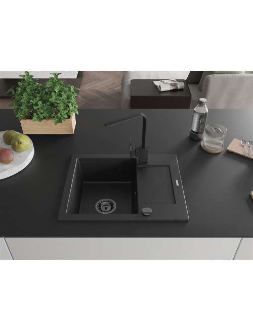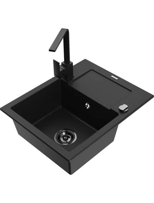 Dane techniczne: Zlewozmywak: Rozmiar: 576x465x174 mm Głębokość komory: 164 mm Wymiary komory: 395x320 mm Średnica odpływu: ø90 mm Typ: 1-komorowy z krótkim ociekaczem Rodzaj: Wpuszczany w blat Kolor: Czarny Wykończenie syfonu: Czarny Materiał: Granit (80% kruszywo granitowe 20% żywice) Otwór przelewowy: Tak Otwory: ( bateria, automat ) 2 Montaż: Uniwersalny, możliwość montażu z ociekaczem po lewej lub prawej stronie Wysoka odporność na zarysowania i przebarwienia Odporność na szok termiczny Powierzchnia ułatwiająca czyszczenie Dwa dodatkowe podfrezowane otwory do samodzielnego wybicia ø35 Bateria kuchenna: Materiał: Mosiądz Kolor: Czarny Głowica: Ceramiczna Perlator: Tak Typ: Jednouchwytowa Wysokość baterii: 290 mm Zasięg wylewki: 220 mm |