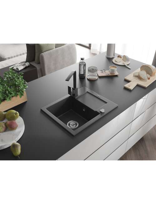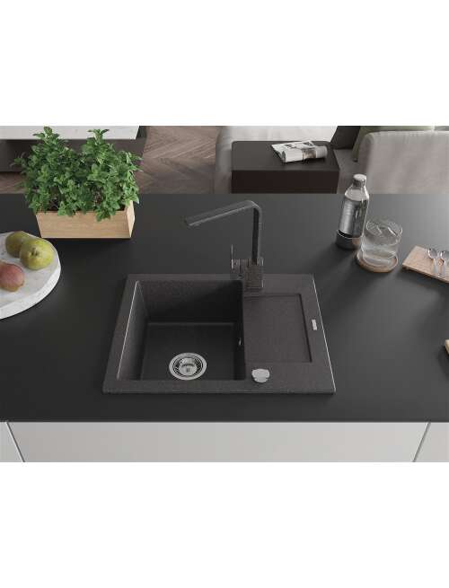 Dane techniczne: Zlewozmywak: Rozmiar: 576x465x174 mm Głębokość komory: 164 mm Wymiary komory: 395x320 mm Średnica odpływu: ø90 mm Typ: 1-komorowy z krótkim ociekaczem Rodzaj: Wpuszczany w blat Kolor: Czarny nakrapiany Wykończenie syfonu: Chrom Materiał: Granit (80% kruszywo granitowe 20% żywice) Otwór przelewowy: Tak Otwory: ( bateria, automat ) 2 Montaż: Uniwersalny, możliwość montażu z ociekaczem po lewej lub prawej stronie Wysoka odporność na zarysowania i przebarwienia Odporność na szok termiczny Powierzchnia ułatwiająca czyszczenie Dwa dodatkowe podfrezowane otwory do samodzielnego wybicia ø35 Bateria kuchenna: Materiał: Mosiądz Kolor: Czarny nakrapiany Głowica: Ceramiczna Perlator: Tak Typ: Jednouchwytowa Wysokość baterii: 290 mm Zasięg wylewki: 220 mm |