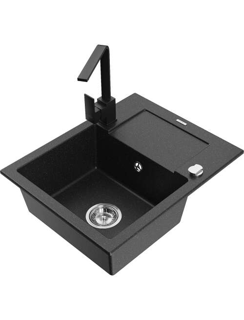 Dane techniczne: Zlewozmywak: Rozmiar: 576x465x174 mm Głębokość komory: 164 mm Wymiary komory: 395x320 mm Średnica odpływu: ø90 mm Typ: 1-komorowy z krótkim ociekaczem Rodzaj: Wpuszczany w blat Kolor: Czarny/Srebrny metalik Wykończenie syfonu: Chrom Materiał: Granit (80% kruszywo granitowe 20% żywice) Otwór przelewowy: Tak Otwory: ( bateria, automat ) 2 Montaż: Uniwersalny, możliwość montażu z ociekaczem po lewej lub prawej stronie Wysoka odporność na zarysowania i przebarwienia Odporność na szok termiczny Powierzchnia ułatwiająca czyszczenie Dwa dodatkowe podfrezowane otwory do samodzielnego wybicia ø35 Bateria kuchenna: Materiał: Mosiądz Kolor: Czarny Głowica: Ceramiczna Perlator: Tak Typ: Jednouchwytowa Wysokość baterii: 290 mm Zasięg wylewki: 220 mm |