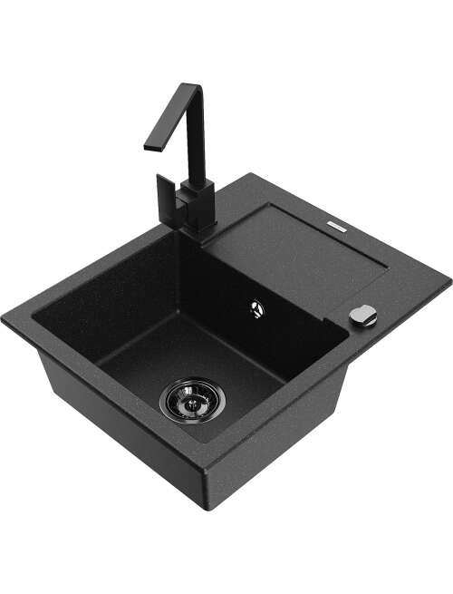 Dane techniczne: Zlewozmywak: Rozmiar: 576x465x174 mm Głębokość komory: 164 mm Wymiary komory: 395x320 mm Średnica odpływu: ø90 mm Typ: 1-komorowy z krótkim ociekaczem Rodzaj: Wpuszczany w blat Kolor: Czarny/Srebrny metalik Wykończenie syfonu: Czarny Materiał: Granit (80% kruszywo granitowe 20% żywice) Otwór przelewowy: Tak Otwory: ( bateria, automat ) 2 Montaż: Uniwersalny, możliwość montażu z ociekaczem po lewej lub prawej stronie Wysoka odporność na zarysowania i przebarwienia Odporność na szok termiczny Powierzchnia ułatwiająca czyszczenie Dwa dodatkowe podfrezowane otwory do samodzielnego wybicia ø35 Bateria kuchenna: Materiał: Mosiądz Kolor: Czarny Głowica: Ceramiczna Perlator: Tak Wysokość baterii: 290 mm Zasięg wylewki: 220 mm |