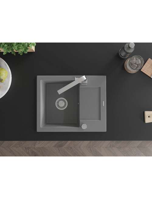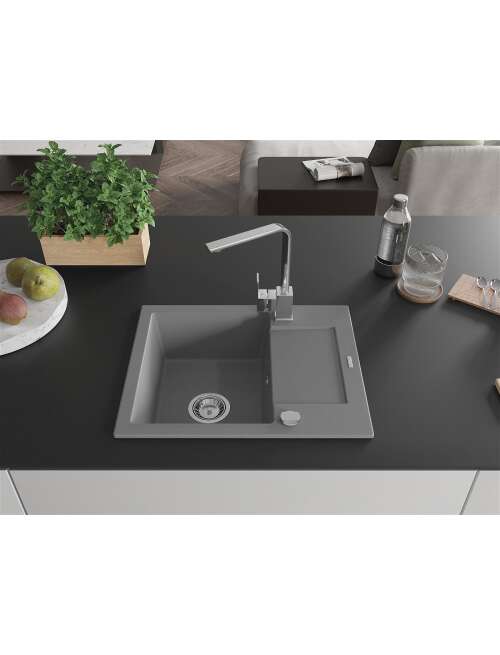 Mexen Enzo zlewozmywak granitowy 1-komorowy z ociekaczem i baterią kuchenną Rita, szary - 6506-71-670300-00