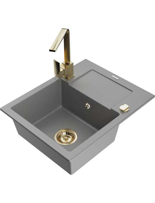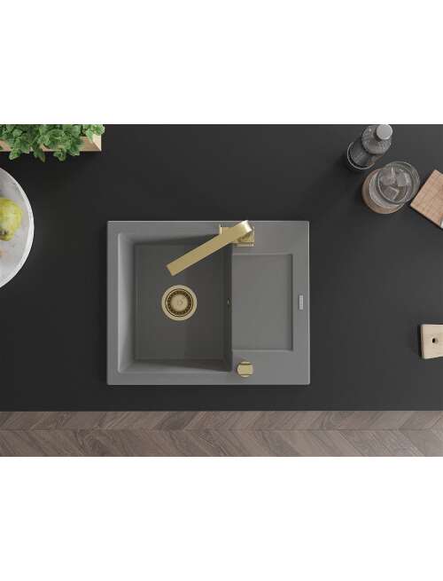 Dane techniczne: Zlewozmywak: Rozmiar: 576x465x174 mm Głębokość komory: 164 mm Wymiary komory: 395x320 mm Średnica odpływu: ø90 mm Typ: 1-komorowy z krótkim ociekaczem Rodzaj: Wpuszczany w blat Kolor: Szary Wykończenie syfonu: Złoty Materiał: Granit (80% kruszywo granitowe 20% żywice) Otwór przelewowy: Tak Otwory: ( bateria, automat ) 2 Montaż: Uniwersalny, możliwość montażu z ociekaczem po lewej lub prawej stronie Wysoka odporność na zarysowania i przebarwienia Odporność na szok termiczny Powierzchnia ułatwiająca czyszczenie Dwa dodatkowe podfrezowane otwory do samodzielnego wybicia ø35 Bateria kuchenna: Materiał: Mosiądz Kolor: Złoty Głowica: Ceramiczna Perlator: Tak Typ: Jednouchwytowa Wysokość baterii: 290 mm Zasięg wylewki: 220 mm |
