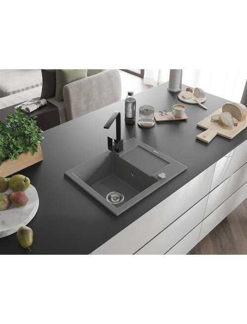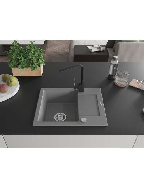 Mexen Enzo zlewozmywak granitowy 1-komorowy z ociekaczem i baterią kuchenną Rita, szary - 6506-71-670300-70