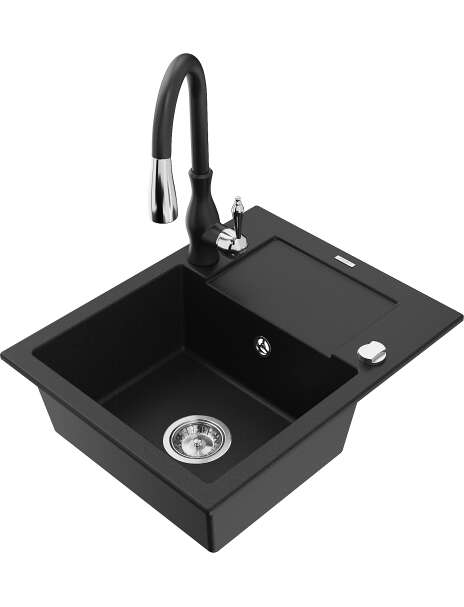 Dane techniczne: Zlewozmywak: Rozmiar: 576x465x174 mm Głębokość komory: 164 mm Wymiary komory: 395x320 mm Średnica odpływu: ø90 mm Typ: 1-komorowy z krótkim ociekaczem Rodzaj: Wpuszczany w blat Kolor: Czarny Wykończenie syfonu: Chrom Materiał: Granit (80% kruszywo granitowe 20% żywice) Otwór przelewowy: Tak Otwory: ( bateria, automat ) 2 Montaż: Uniwersalny, możliwość montażu z ociekaczem po lewej lub prawej stronie Wysoka odporność na zarysowania i przebarwienia Odporność na szok termiczny Powierzchnia ułatwiająca czyszczenie Dwa dodatkowe podfrezowane otwory do samodzielnego wybicia ø35 Bateria kuchenna: Materiał: Mosiądz Kolor: Czarny Głowica: Ceramiczna Perlator: Tak Typ: Jednouchwytowa Wysokość baterii: 410 mm Zasięg wylewki: 231 mm |