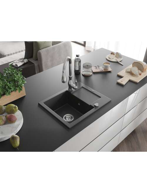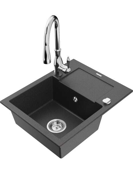 Dane techniczne: Zlewozmywak: Rozmiar: 576x465x174 mm Głębokość komory: 164 mm Wymiary komory: 395x320 mm Średnica odpływu: ø90 mm Typ: 1-komorowy z krótkim ociekaczem Rodzaj: Wpuszczany w blat Kolor: Czarny nakrapiany Wykończenie syfonu: Chrom Materiał: Granit (80% kruszywo granitowe 20% żywice) Otwór przelewowy: Tak Otwory: ( bateria, automat ) 2 Montaż: Uniwersalny, możliwość montażu z ociekaczem po lewej lub prawej stronie Wysoka odporność na zarysowania i przebarwienia Odporność na szok termiczny Powierzchnia ułatwiająca czyszczenie Dwa dodatkowe podfrezowane otwory do samodzielnego wybicia ø35 Bateria kuchenna: Materiał: Mosiądz Kolor: Chrom Głowica: Ceramiczna Perlator: Tak Typ: Jednouchwytowa Wysokość baterii: 410 mm Zasięg wylewki: 231 mm |