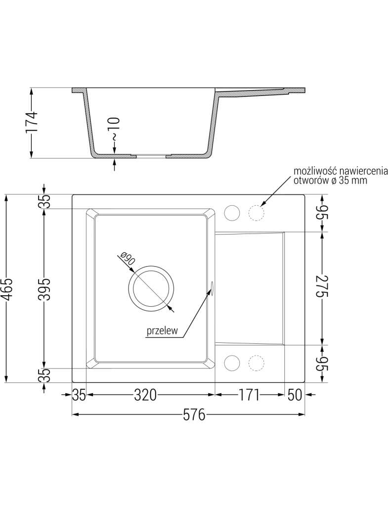 Отверстие для перелива: Да