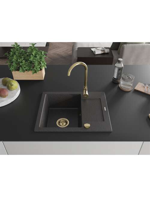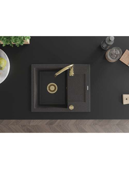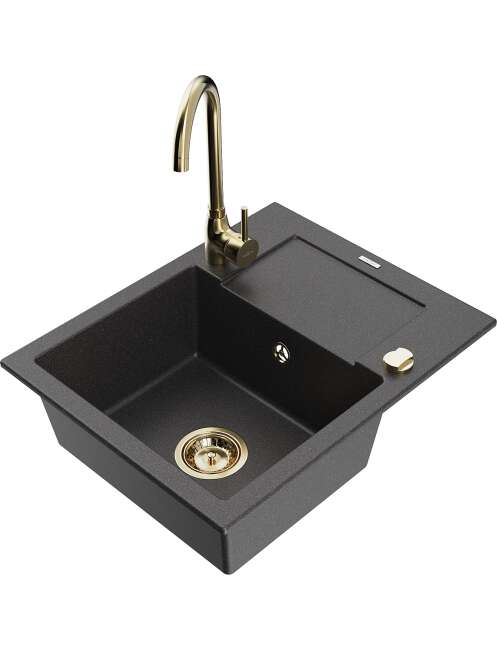 Mexen Enzo zlewozmywak granitowy 1-komorowy z ociekaczem i baterią kuchenną Telma, czarny nakrapiany - 6506-76-670200-50