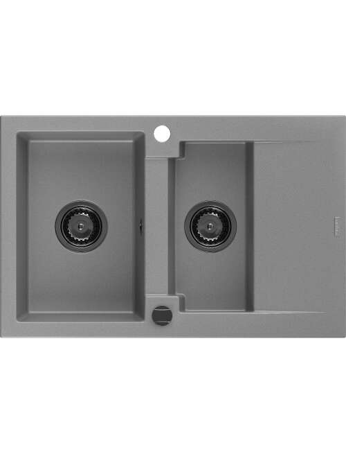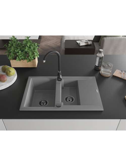 Mexen Gaspar zlewozmywak granitowy 1,5-komorowy z ociekaczem 737 x 475 mm, szary, syfon czarny - 6507731505-71-B