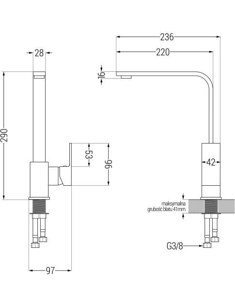 Montaż: Uniwersalny, możliwość montażu z ociekaczem po lewej lub prawej stronie