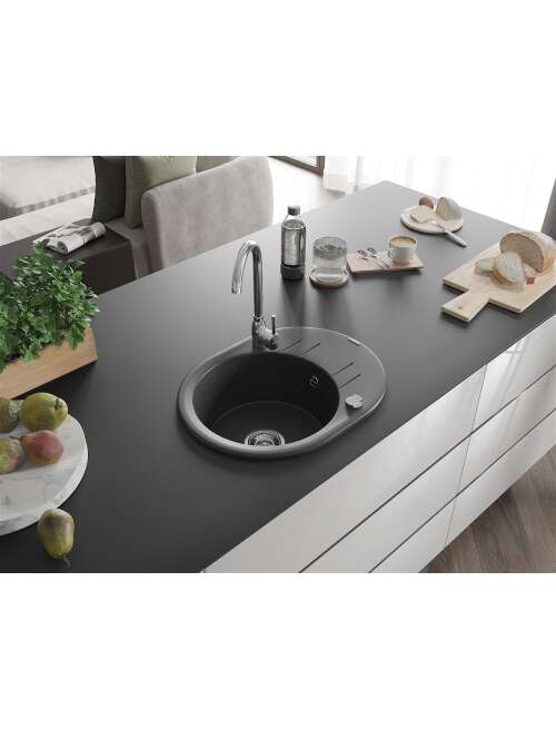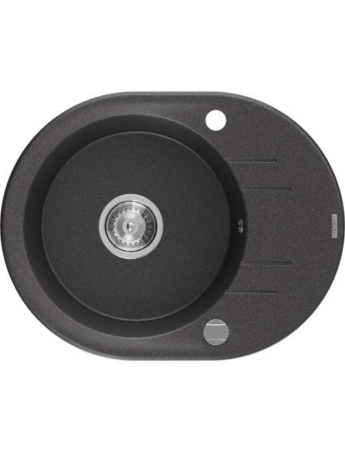 Mexen Kevin zlewozmywak granitowy 1-komorowy z ociekaczem 586 x 458 mm, czarny nakrapiany, syfon chrom - 6517581005-76