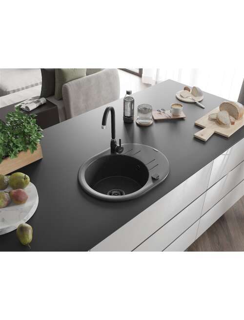 Mexen Kevin zlewozmywak granitowy 1-komorowy z ociekaczem 586 x 458 mm, czarny nakrapiany, syfon czarny - 6517581005-76-B