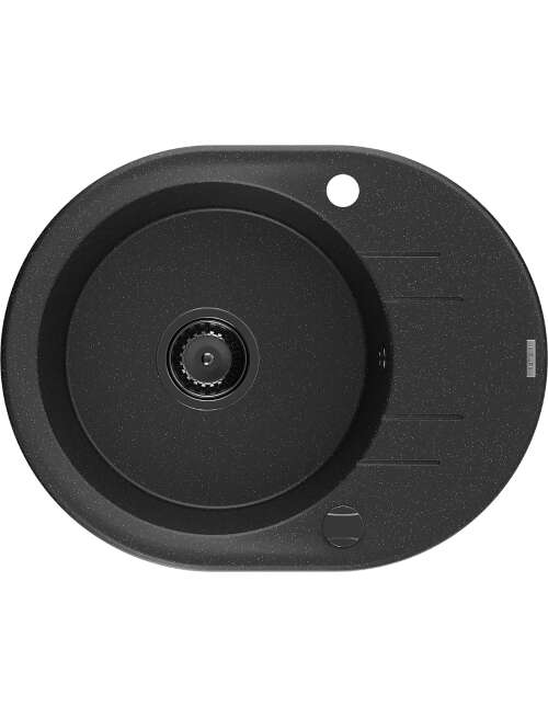 Mexen Kevin zlewozmywak granitowy 1-komorowy z ociekaczem 586 x 458 mm, czarny/srebrny metalik, syfon czarny - 6517581005-73-B