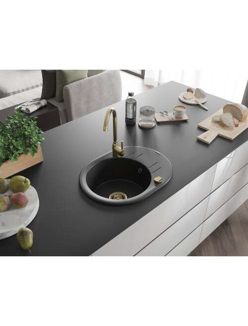 Dane techniczne: Rozmiar: 586x458x190 mm Głębokość komory: 180 mm Szerokość komory: 378x374 mm Średnica odpływu: ø90 mm Rodzaj: 1-komorowy z krótkim ociekaczem Typ: Wpuszczany w blat Materiał: Granit Kolor: Czarny/Srebrny metalik Wykończenie syfonu: Złoty Otwór przelewowy: Tak Otwór na baterie: Tak Syfon automatyczny w komplecie Wysoka odporność na zarysowania i przebarwienia Odporność na szok termiczny Powierzchnia ułatwiająca czyszczenie Dwa dodatkowe podfrezowane otwory do samodzielnego wybicia ø35 |
