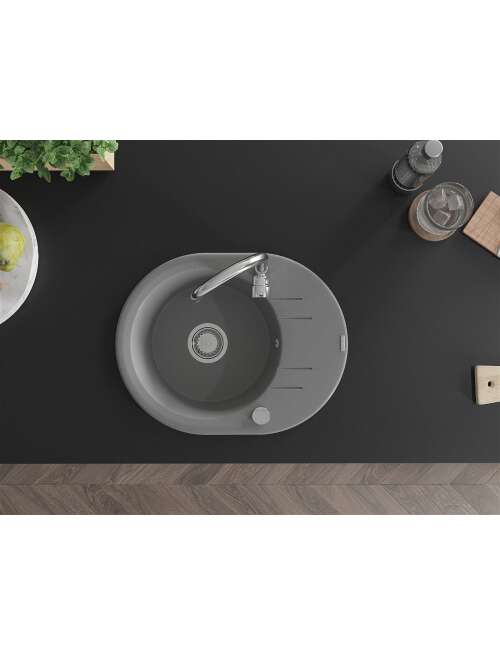 Dane techniczne: Rozmiar: 586x458x190 mm Głębokość komory: 180 mm Szerokość komory: 378x374 mm Średnica odpływu: ø90 mm Rodzaj: 1-komorowy z krótkim ociekaczem Typ: Wpuszczany w blat Materiał: Granit Kolor: Szary Wykończenie syfonu: Chrom Otwór przelewowy: Tak Otwór na baterie: Tak Syfon automatyczny w komplecie Wysoka odporność na zarysowania i przebarwienia Odporność na szok termiczny Powierzchnia ułatwiająca czyszczenie Dwa dodatkowe podfrezowane otwory do samodzielnego wybicia ø35 |