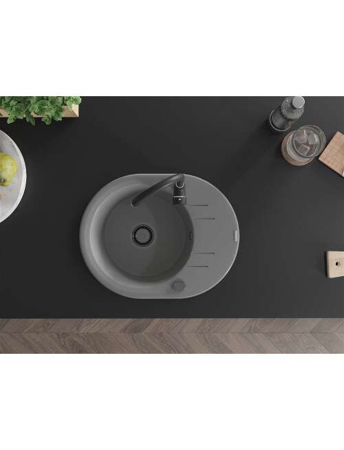 Mexen Kevin zlewozmywak granitowy 1-komorowy z ociekaczem 586 x 458 mm, szary, syfon czarny - 6517581005-71-B