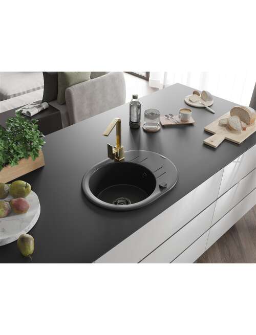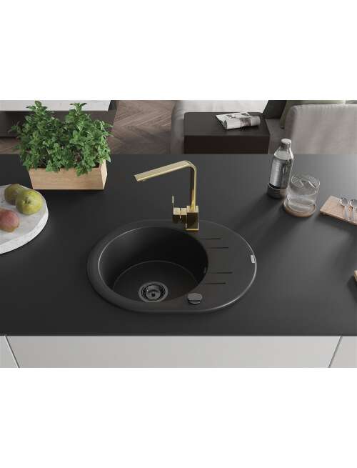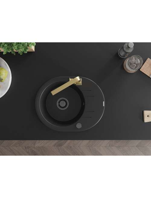 Dane techniczne: Zlewozmywak: Rozmiar: 586x458x190 mm Głębokość komory: 180 mm Szerokość komory: 378x374 mm Średnica odpływu: ø90 mm Typ: 1-komorowy z krótkim ociekaczem Rodzaj: Wpuszczany w blat Kolor: Czarny Wykończenie syfonu: Czarny Materiał: Granit (80% kruszywo granitowe 20% żywice) Otwór przelewowy: Tak Otwory: ( bateria, automat ) 2 Montaż: Uniwersalny, możliwość montażu z ociekaczem po lewej lub prawej stronie Wysoka odporność na zarysowania i przebarwienia Odporność na szok termiczny Powierzchnia ułatwiająca czyszczenie Dwa dodatkowe podfrezowane otwory do samodzielnego wybicia ø35 Bateria kuchenna: Materiał: Mosiądz Kolor: Złoty Głowica: Ceramiczna Perlator: Tak Typ: Jednouchwytowa Wysokość baterii: 290 mm Zasięg wylewki: 220 mm |