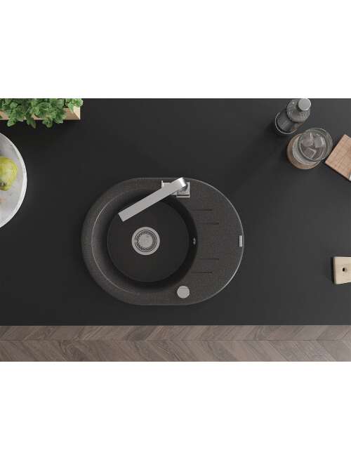 Dane techniczne: Zlewozmywak: Rozmiar: 586x458x190 mm Głębokość komory: 180 mm Szerokość komory: 378x374 mm Średnica odpływu: ø90 mm Typ: 1-komorowy z krótkim ociekaczem Rodzaj: Wpuszczany w blat Kolor: Czarny nakrapiany Wykończenie syfonu: Chrom Materiał: Granit (80% kruszywo granitowe 20% żywice) Otwór przelewowy: Tak Otwory: ( bateria, automat ) 2 Montaż: Uniwersalny, możliwość montażu z ociekaczem po lewej lub prawej stronie Wysoka odporność na zarysowania i przebarwienia Odporność na szok termiczny Powierzchnia ułatwiająca czyszczenie Dwa dodatkowe podfrezowane otwory do samodzielnego wybicia ø35 Bateria kuchenna: Materiał: Mosiądz Kolor: Chrom Głowica: Ceramiczna Perlator: Tak Typ: Jednouchwytowa Wysokość baterii: 290 mm Zasięg wylewki: 220 mm |